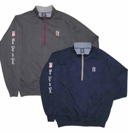 USプロツアーオリジナル。着脱しやすい深めのジッパーを備えた、ラウンド前のウォームアップにおすすめのトレーナーです!